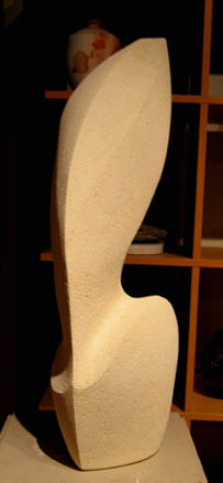 This sculpture uses flowing forms to suggest the graceful poise of a dancer.Available as: this is a one-off, hand carved, stone artwork.Price: (AUD)$2,000 + GST (ex-studio)